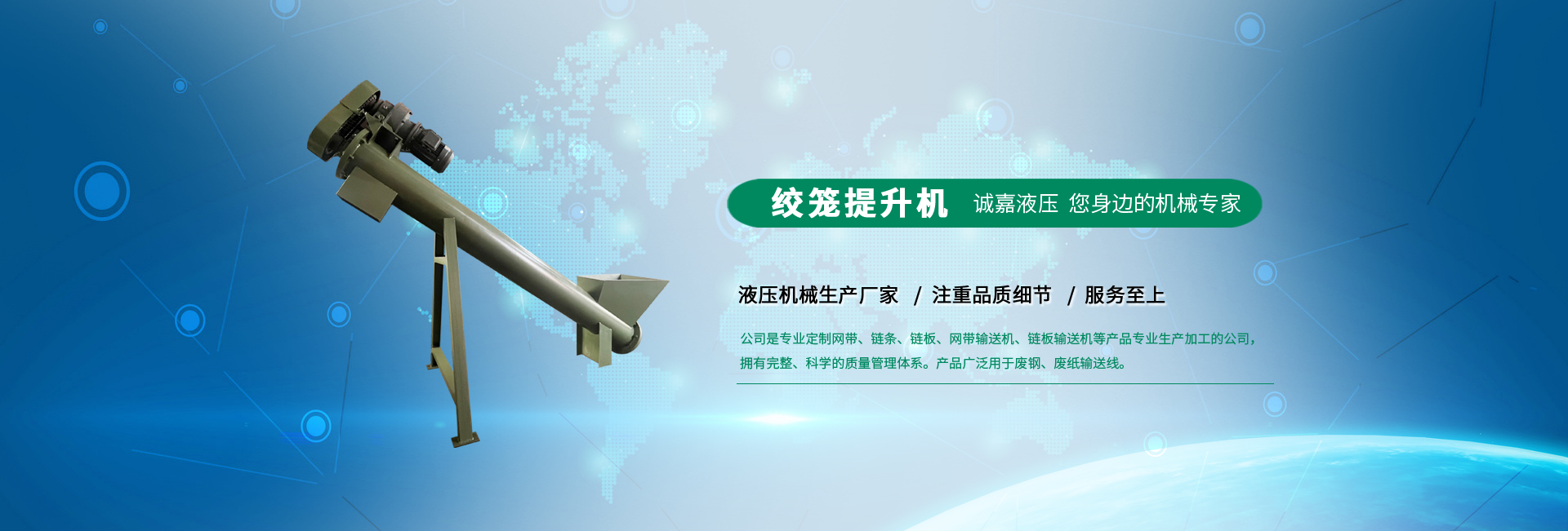 江陰誠嘉液壓機(jī)械有限公司是一家專業(yè)定制廢紙打包機(jī)、鐵鏈板式輸送機(jī)、皮帶式輸送機(jī)的生產(chǎn)廠家。公司坐落于聞名的江陰市周莊鎮(zhèn),東臨上海,南連無錫,北依江陰長江大橋,“黃金通道”——滬寧高速分路及錫澄高速公路穿近通過,地理位置十分優(yōu)越,水陸交通便捷。 公司建有專業(yè)的售后服務(wù)團(tuán)隊,提供生產(chǎn)線設(shè)計,設(shè)備制造,安... ...【查看詳情】